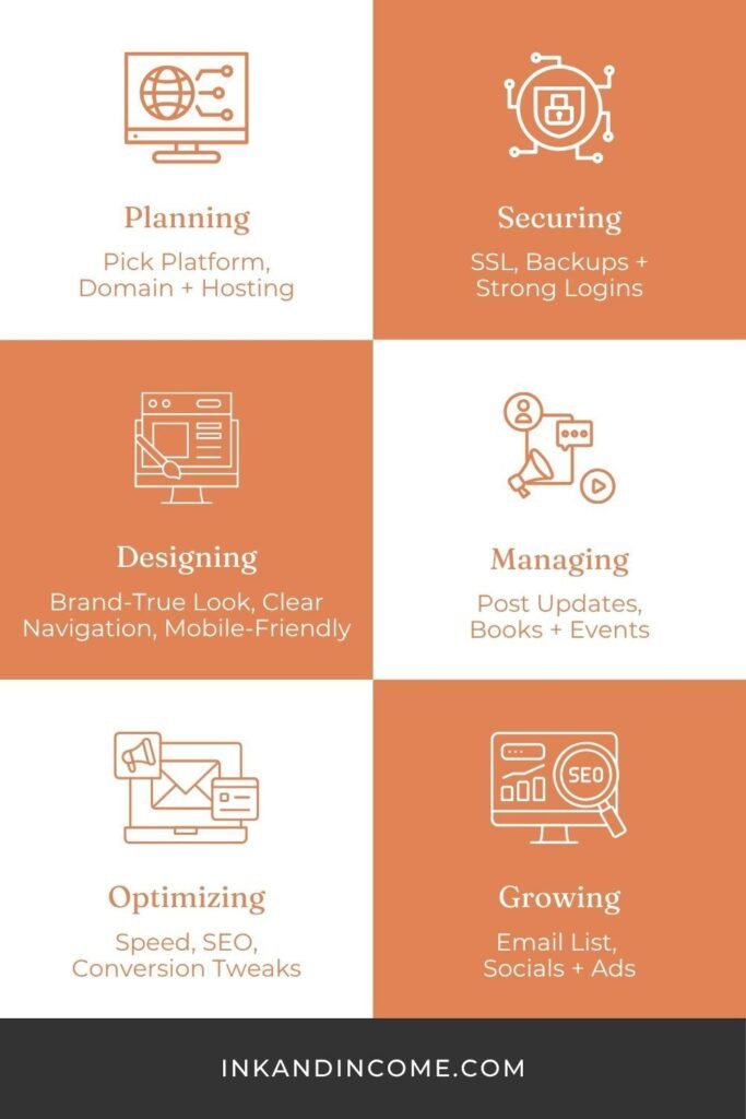 There are certain mistakes that many authors make when setting up their websites. These include: